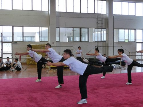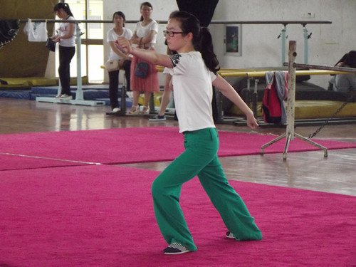 下午的集体项目共有10支队伍参赛。首先进行的是非专业组的比赛。经过一段时间的训练,非专业组的参赛队员表现得非常出色。行知艺体代表队在柔和的音乐下舒展自己的身体,而综合代表队先打了一段太极拳,后展示了一段激情澎湃的剑术,赢得了观众的阵阵掌声。我院代表队向观众表演了初级长拳,以弓步击掌等动作配合威风凛凛的发声渲染了威严的气氛,获得了不斐的成绩。专业组的比赛令人眼花缭乱,十八般兵器各显风采。第一个出场的是社体123班。八位女生席地而坐,伴随悠扬的旋律相互推掌。而后音乐突然转急,其中两位施展出迅捷而凶猛的武术技巧。一个伏步穿掌的亮相,充分展示了巾帼英雄的风采。此外,体教121班的六位女生如行云流水般将一套动作一气呵成,穿掌摆拳之间衔接得滴水不漏,让观众享受了一场视觉盛宴。