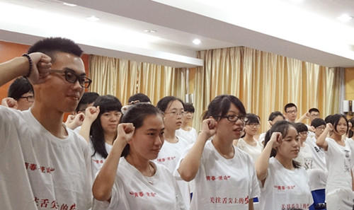 最后,马莉老师上台发表讲话。她以当年自己的亲身经历为基础展开演讲,向我们强调了实践过程中应注意的事项。“虽然大家的生活习惯不一样,性格不一样,但作为团体,我们要有集体意识,团队纪律一定要遵守。”马莉老师首先说明了“遵守纪律确保安全”的重要性。同时,强调了实践是一次学习的过程,是大学生接触社会、提升自我的好时机。此外,她着重提出了“知行合一,发扬风格”的实践精神要求。
