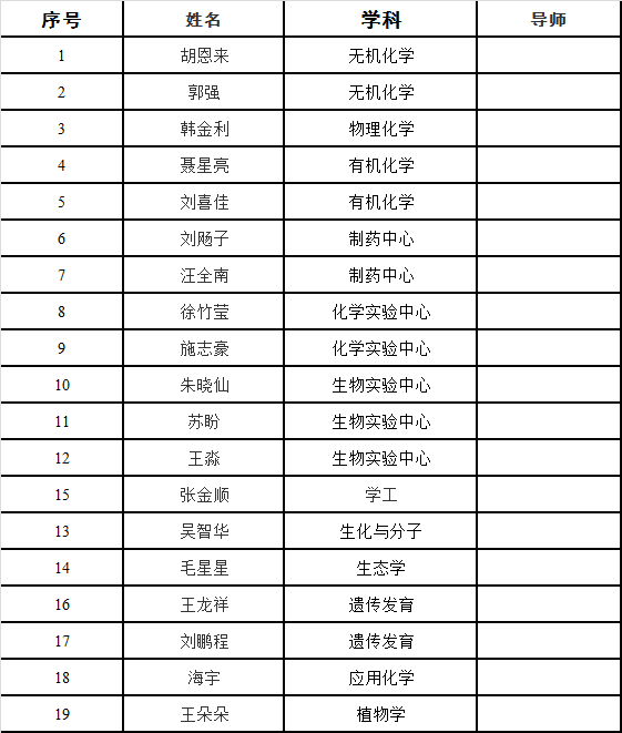 年龄在35周岁(含)以下,没有本科教学(理论、实验教学)经验的青年教师或不具备主讲教师能力的青年教师(包括学院专任教师、独立科研机构科研为主型教师、实验员)。19人名单如下: