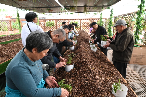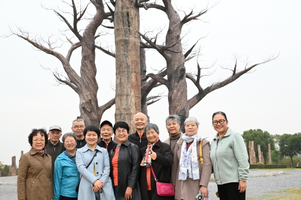 上午,老同志们乘车抵达森山健康小镇,小镇位于义乌市义亭镇,是集大健康产业、生态农业、文化旅游、养生养老等功能于一体的新型健康特色小镇,包含铁皮石斛繁育基地、硅化木地质公园等核心区域。入园后,老同志们首先参观了世界最大的硅化木群,惊叹于自然与时间的奇妙融合。随后,大家近距离观赏了优雅的丹顶鹤群,感受人与自然和谐共生。在石斛种植园,老同志们亲手栽下石斛幼苗,体验农耕乐趣,寄托健康长寿的美好期许。