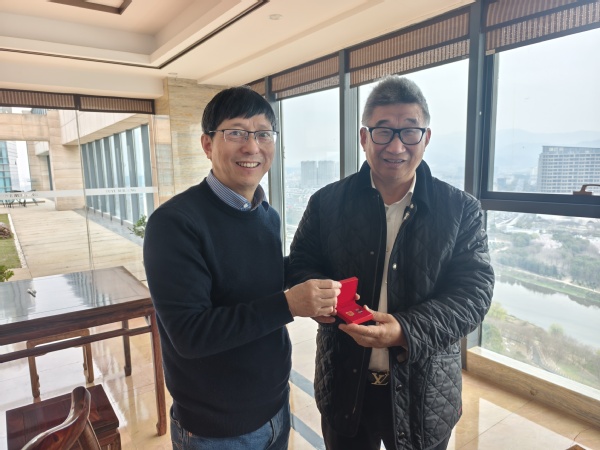 为加强校友联系,拓展校企合作渠道,3月9日,金华市高新技术企业协会会长、浙江师范大学原副校长钟依均,学院党委书记谢枝文、党委副书记杨东、退休教师朱俭一行赴义乌走访化学82级校友、义乌宇业投资有限公司董事长朱宏云。此行旨在带去母校的问候,倾听校友心声,重拾青春记忆,共绘发展蓝图。