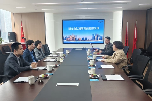 商晗文对母校老师的到来表示由衷欢迎。他动情回忆了在浙师求学的点滴岁月,感念母校的培育之恩。交流结束后,商晗文带领大家参观了企业展厅和研发中心,详细讲解了浙江鼎仁消防科技有限公司的发展历程、主营业务及未来战略方向,重点展示了企业在智慧消防、技术创新等领域取得的成果。