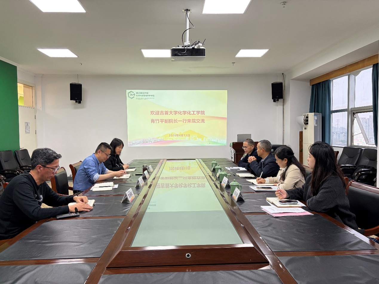 4月14日下午,湖南吉首大学化学化工学院肖竹平副院长一行4人莅临我院开展人才培养与专业建设专题调研交流。乔儒副院长主持会议,化学专业副主任柏一慧、教务办主任王红梅、院学科竞赛部主任宫培军参加会议。